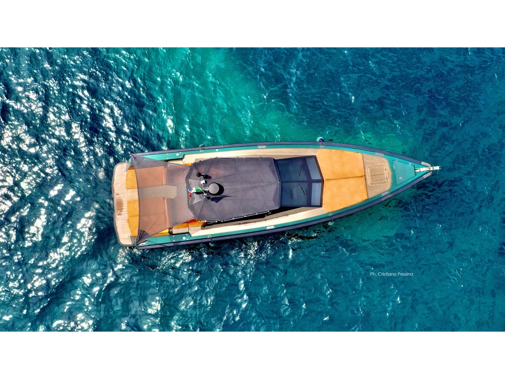 The WP 47' features a large, yet sheltered, deck area including the navigation/steering console and social cockpit. The well-protected and shaded central living area is equipped with a bimini top, and a dining table with comfortable seating for six - eight guests. The forward and aft areas feature sun pads, while the retractable swimming ladder is hydraulically operated and concealed in the stern. The extensive and unobstructed deck is laid with non-slip teak for safety and comfort under foot. The accommodation is for two guests in one cabin and a second cabin for the captain; the large cabin with a full double bed to forward with a single cabin on the starboard side. The simple and stylish interior includes a fully equipped galley, and a bathroom with basin, head and shower. The design combines carbon fibre mixed with natural teak, and white painted cabinets and ceiling. The two diesel engines Volvo Penta IPS 600, 435 Hp each allow a cruising speed of more than 30 Knots with a low consumption. Call for more details. IMPORTANT REFIT 2022