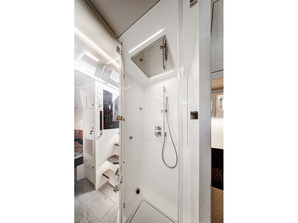 Dracan 42: il catamarano a motore che definisce nuovi standard nello yachting. Uno yacht in cui design, tecnologia e comfort si combinano con un look che cattura al primo sguardo e uno spazio che ti sorprenderà . Con moderne soluzioni tecniche come i motori fuoribordo inglobati sotto i prendisole di poppa e le diverse configurazioni disponibili per il layout interno con 2, 3 o 4 questo catamarano è pronto ad accompagnarti in crociere entusiasmanti.
