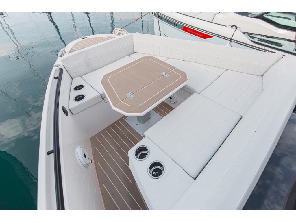 Il Saxdor 340 GTWA stabilisce un nuovo standard in termini di design e funzionalità per la navigazione in ogni condizione atmosferica. Questo modello walkaround fonde perfettamente il piacere di stare all'aperto con un comfort protetto, offrendo uno spazio sicuro e resistente alle intemperie che ti mantiene al riparo in qualsiasi situazione. Essendo l'unico modello wheelhouse walkaround della sua categoria a presentare ampie terrazze laterali, offre passaggi spaziosi e una vasta area aperta che facilitano il movimento e il relax quando aperte. Il divano di prua e il prendisole sul ponte di poppa sono punti deliziosi per rilassarsi e godersi la brezza. La plancia di comando ergonomica presenta un divano frontale per tre persone, garantendo ottima visibilità e comfort. Quando la barca è ferma, il divano può essere ruotato per creare un'accogliente dinette, perfetta per socializzare al coperto. Il ponte inferiore include una spaziosa cabina matrimoniale a prua con WC separato e una cabina di poppa per due, entrambe dotate di ampie finestre che inondano gli interni di luce naturale. Goditi il tuo tempo in acqua senza interruzioni con il Saxdor 340 GTWA Walkaround, indipendentemente dal tempo.