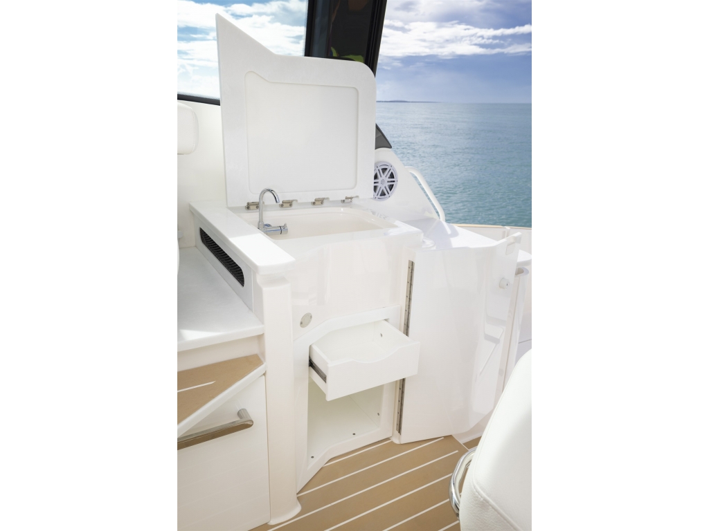 Il 39 LE vive all?incrocio tra tradizione e lusso; radicato nei pilastri di innovazione e versatilità della Serie LE, rimanendo al tempo stesso fedele all?eredità del design senza tempo di Tiara Yachts. Dispone di una zona sociale in salone con sedute versatili: il sedile di guida ruota verso l?interno mentre quello del copilota si regola per formare un comodo divano a L, ideale per intrattenere gli ospiti. Il pozzetto di poppa offre un?esperienza unica, con la possibilità di scegliere tra il Buffet Lounge o il modulo Adventure. Il sedile rivolto a poppa con vano di stivaggio completa entrambe le configurazioni. La cucina, posizionata con cura sottocoperta per valorizzare lo spazio sociale sul ponte principale, è dotata di lavello, microonde, piano cottura e accessori premium, pensati per rendere l?intrattenimento a bordo semplice ed elegante. Due cabine confortevoli ed un bagno completo di box doccia, assicurano comodità durante le crociere più lunghe.