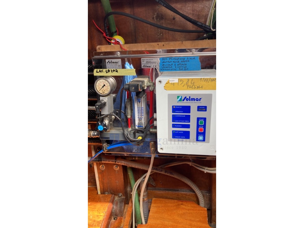 Doppia autoclave, Pompa acqua di mare, Boiler, Dissalatore Selma Edr 290 350lt/h, Aria condizionata Frigomar, Icemaker Vitifrigo, Impianto antincendio.