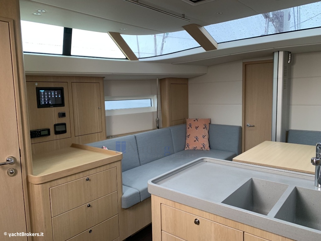 Albero e boma in alluminio Selden 2 crocette con sartiame inox, Verricelli elettrici Lewmar per genoa, drizze e randa, Bompresso gennaker in carbonio Selden, Tendipaterazzo idraulico manuale, Dutchman Maindrop System.