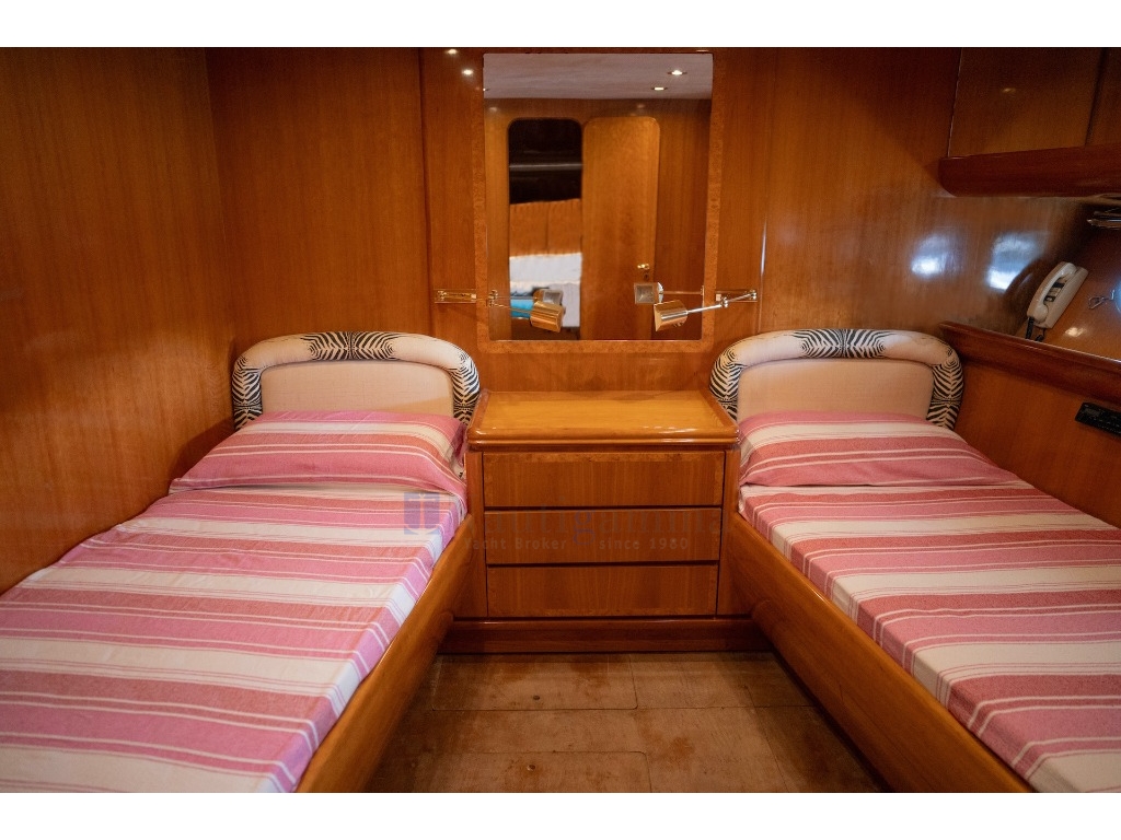 - INTERVENTI ESEGUITI NEGLI ANNI: RIPRISTINO TEAK SUL FLY, AGGIORNAMENTO STRUMENTAZIONE, CONTROLLO POMPE E AUTOCLAVI, SOSTITUZIONE POMPE SENTINA, PRESE A MARE, MOTORE CONDIZIONATORE, PACCO BATTERIE COMPLETO, VERIFICA IMPIANTO IDRAULICO E ACQUE NERE, SOSTITUZIONE BOCCOLE ASSE (LISTA COMPLETA SU RICHIESTA).