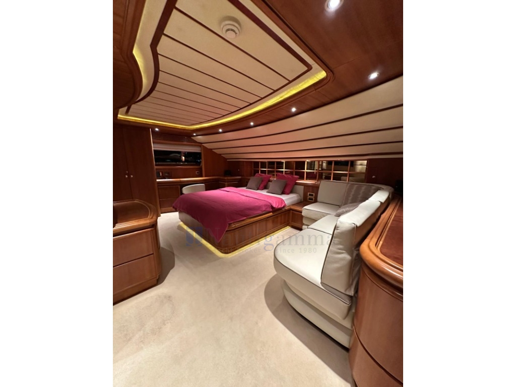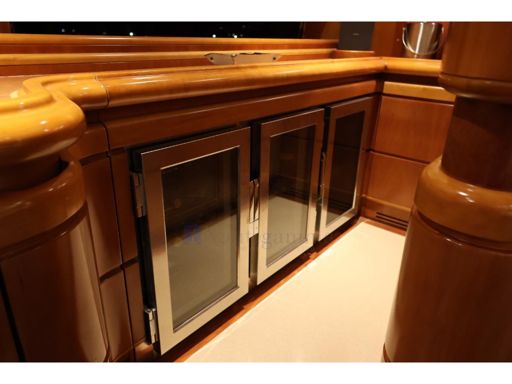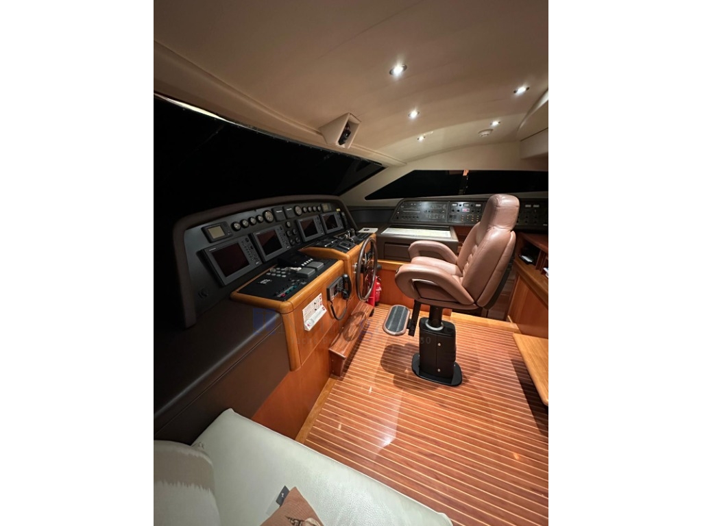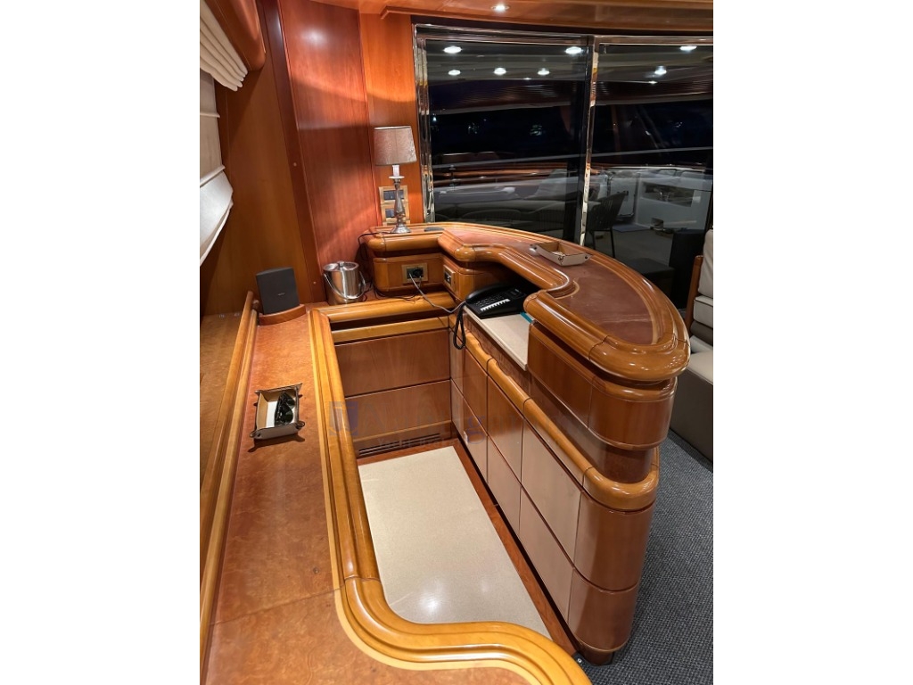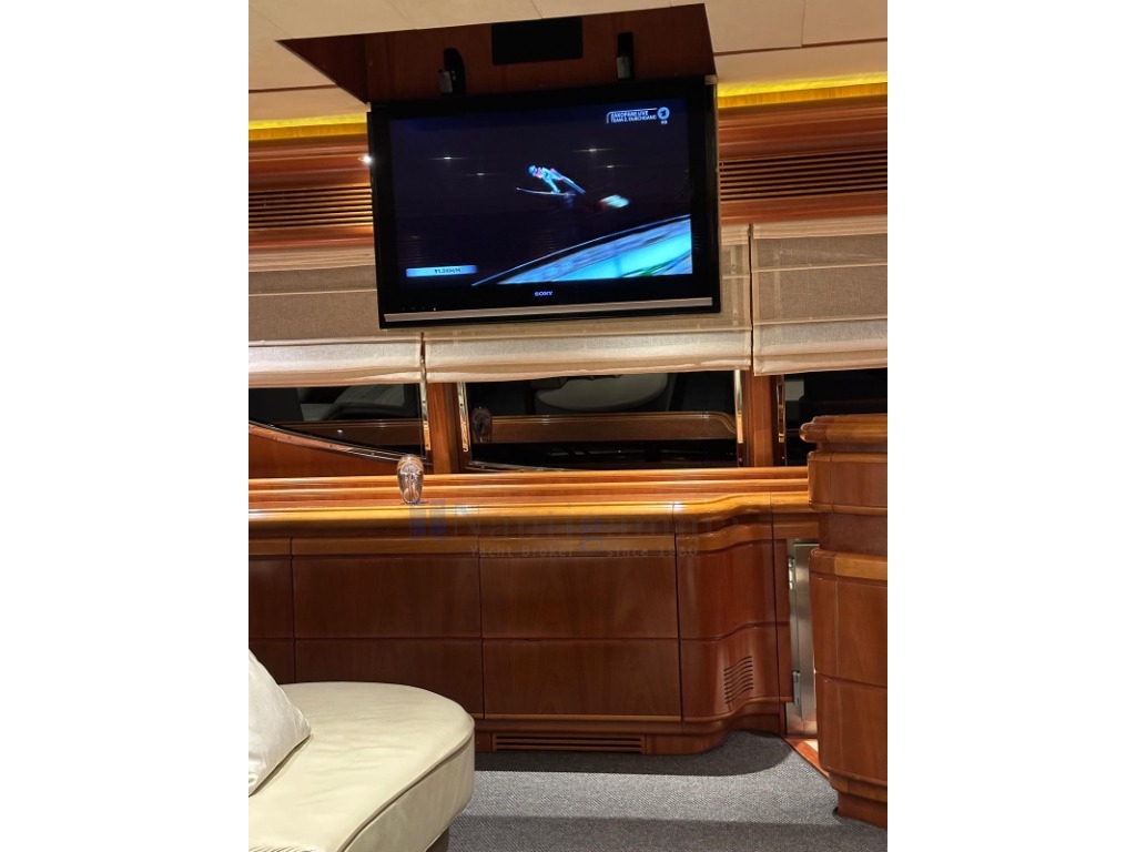 Meraviglioso salone sul ponte principale con ampio divano in pelle a U e tavolino da caffè, mobili in ciliegio lucido, TV a scoparsa dal soffitto; zona dinette con tavolo ovale per 8 persone; Grande cucina ben equipaggiata con discesa verso l'alloggio equipaggio. Daily toilet. Porta di uscita laterale.