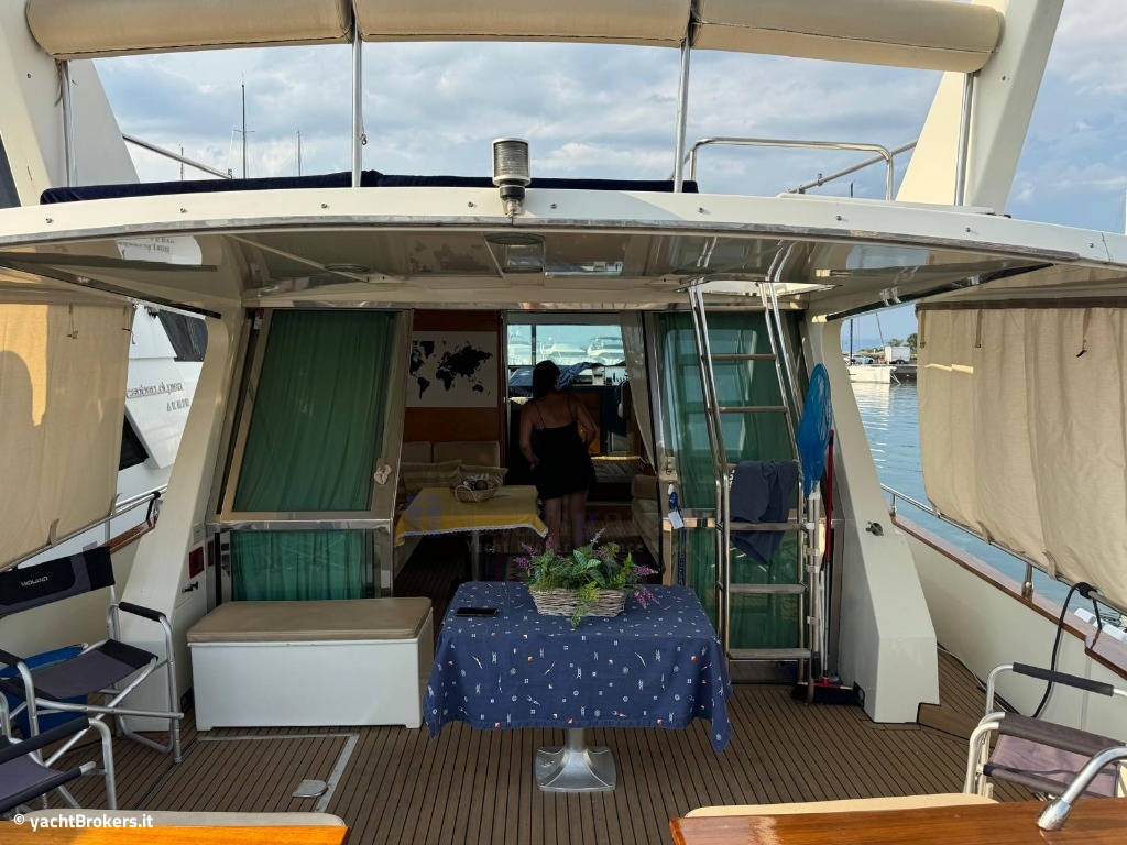 Doccia esterna, Tavolo pozzetto, Passerella, Piattaforma maggiorata in teak, Scaletta bagno, Salpancora elettrico, Selle per tender, Wet bar su fly.