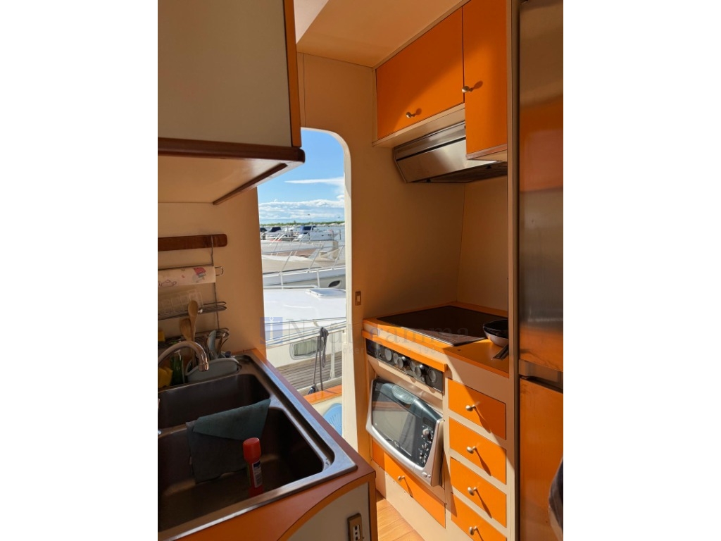 Indicatore angolo barra, Bussola, Log, Echo, Gps, Plotter, Autopilota, Radar, Vhf Icom IC-M601, Barometro, Luci navigazione, Allarme motore. Flaps idraulici, Indicatori flaps, Presa banchina 220V, Presa acqua banchina, Tromba.
