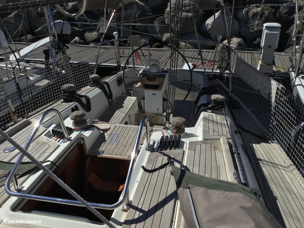 Attrezzatura di coperta: Harken e Bamar (scotte, drizze e borose Gottifredi), 6 winches (1 elettrico con pulsantiera 2024 e due per la scotta randa 2017), rotaie da 40mm con doppio carrello, Randa alla tedesca con spinlock (2017), Vang Bamar (2017), Boma e Bompresso inox Velscaf Manzoli (2017), sistema battcar con carrelli Harken 2017, strallo di trinchetta su mezzaluna 2017, attacco in coperta per strallo trinchetta 2017, volanti in dynema, paranco Harken scotta randa 2017, bozzelli a piede dâalbero Harken 2017, rimandi in pozzetto a 8 vie Harken 2017, drizze randa e genoa 2023, scotte genoa 2023, terzaroli e varie altre drizze 2017, patta dâoca in cavo inox 10*133 e bozzello 2017, Tendipaterazzo revisionato (2024);
