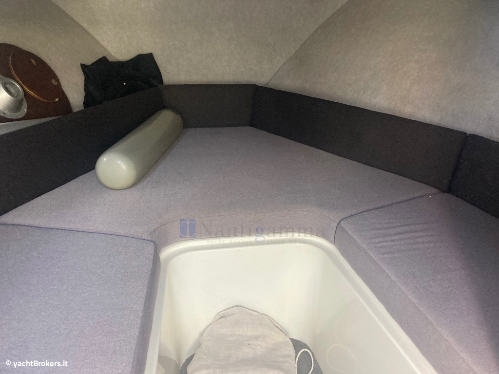 Tendalino grande con ombreggianti, Chiusura totale campeggio nautico, Copertura estiva plancia e seduta, Sedute di poppa a U con cuscineria completa.