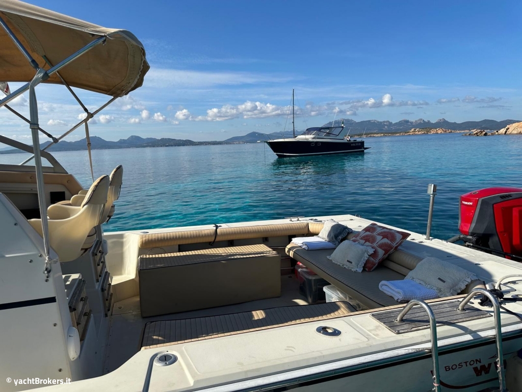 Nel 1958, l'ingegnere americano Dick Fisher ha creato il suo cantiere nel Massachusetts. Ha chiamato i suoi scafi Boston Whaler, dove Whaler significa "barca a vela" e Boston è la capitale di questo stato americano. Fisher ha basato il suo concetto sulle qualità della schiuma poliuretanica appena inventata, che ha iniettato tra le due pelli dello scafo. Grazie a questo processo rivoluzionario, Dick Fisher assicurava ai suoi scafi una solidità e un'inaffondabilità senza pari. La stabilità degli scafi ad ala di gabbiano è anche una caratteristica molto popolare tra gli utenti di Boston Whaler. La controparte di questo design è una barca abbastanza bagnata, che sbatte nel chop a testa alta. Questo non impedirà alla Boston Whaler di essere acclamata dai pescatori e dai professionisti della marina. Beneficiando di un mercato nautico molto vivace, le barche di Boston si vendono bene e sono esportate in tutto il mondo. Il modello in vendita è stato progettato principalmente per un uso familiare, la gamma si distingue per la disposizione del ponte Central Console. Questa disposizione crea un passaggio centrale che facilita il movimento a bordo e le manovre in porto.