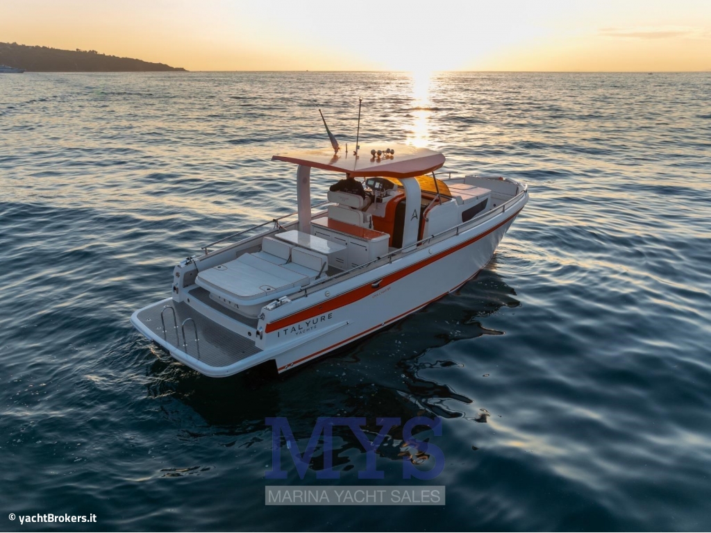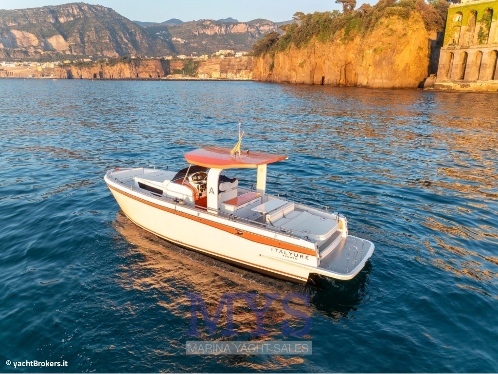 L?Italyure 35 è un elegante walkaround di circa 11 metri, realizzato dal giovane e dinamico cantiere Italyure Yachts, noto per combinare design moderno, comfort e qualità costruttiva made in Italy.