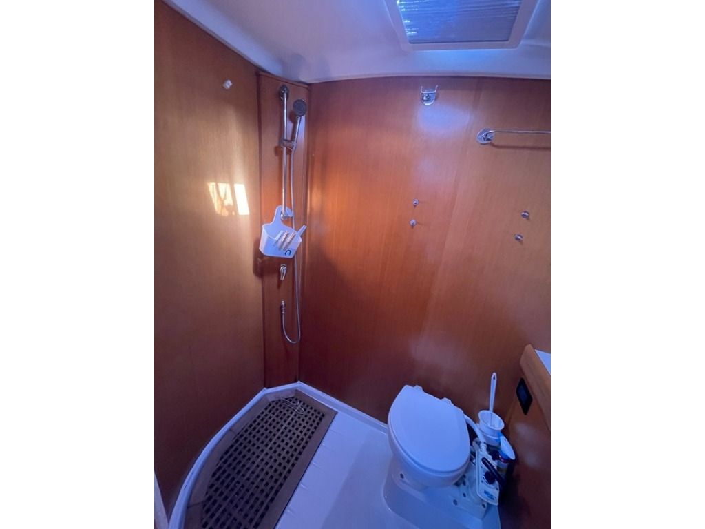 Versione con cabina doppia a poppa, bagno a poppa. Cabina armatoriale con bagno dedicato con doccia.