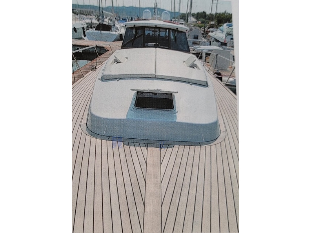 - COSTRUZIONE TECNOLOGIA AATS (Paramezzale in iroko laminato. Ordinate in acacia. Fasciame spessore totale 26mm. Bagli in mogano) E COPERTA IN COMPENSATO MARINO E DOGHE IN TEAK.