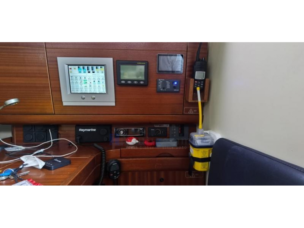 Smart Pilot Raymarine S2 con unità di comando ST6002 alla ruota di dritta, Vhf Raymarine Ray63 al carteggio, Vhf Raymarine Raymic in pozzetto, Strumenti vento Raymarine ST60+, Echo/Log Raymarine ST60+, Bolinometro Raymarine ST60+, Radar, Chartplotter E80 Raymarine al carteggio, Antenna Radar per E80 su colonna a poppa, Navtex NASA Clipper con display autonomo ed antenna a poppa. Epirb (revisione+sostituzione batterie 2017), Nr 3 ripetitori albero Raymarine ST290 (tutti con schermi nuovi sostituiti tra il 2022 ed il 2024), Nr 2 Pannelli solari 110W Sun Power.