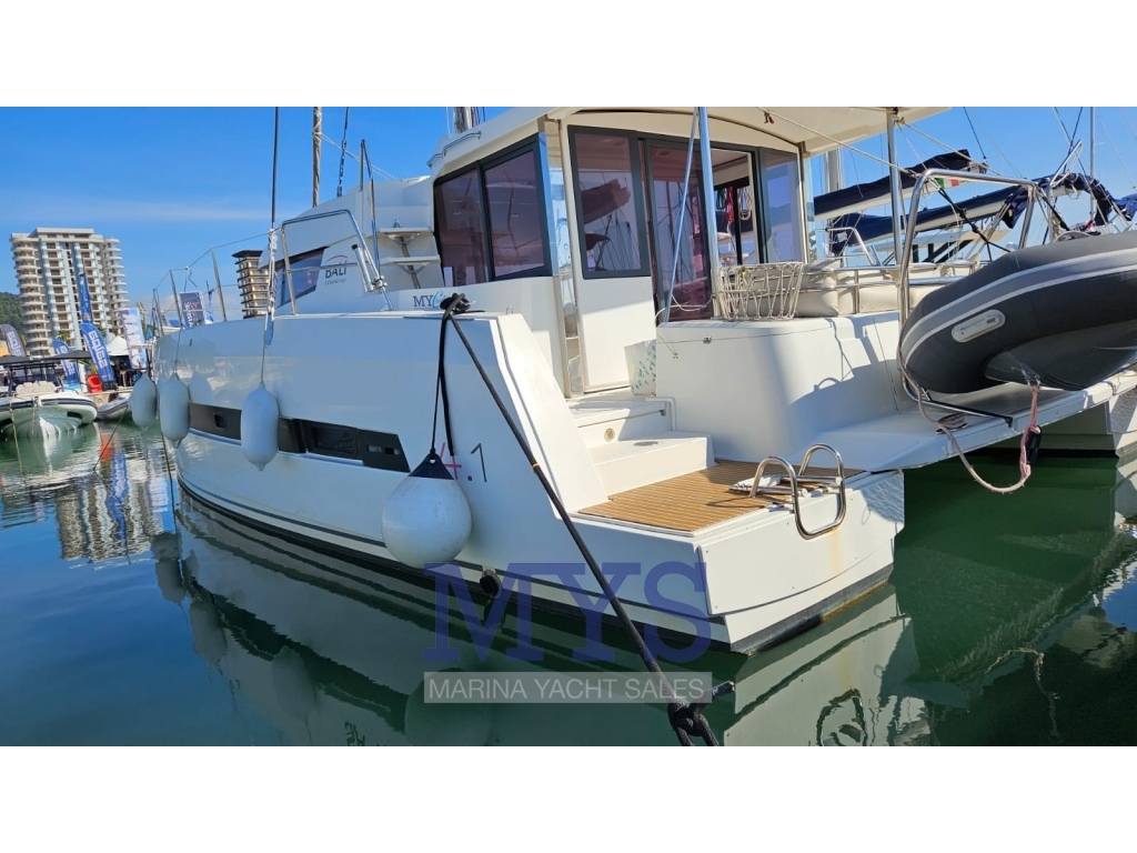 Il BALI 4.1 riprende tutte le innovazioni che hanno avuto tanto successo con il BALI 4.0. Ampia area pozzetto/salone, che si apre completamente con un'enorme porta vetrata girevole. L'area di prua integrale molto adatta alla navigazione che fornisce rigidità e protezione dagli spruzzi con un'area prendisole molto ampia e un pozzetto di prua che può ospitare comodamente tutto l'equipaggio. La postazione di comando rialzata e il fly bridge molto conviviale. Finestre retrattili o scorrevoli per una ventilazione ottimale sia in mare che all'ancora. Il BALI 4.1 offre una piattaforma di poppa integrale che collega i due scafi. Grandi gavoni laterali che possono ospitare una griglia o l'attrezzatura subacquea.