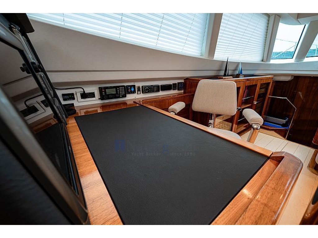 Elettronica Raymarine: Bussola, Display multi control, Echo, Log, Strumenti del vento, Ripetitori, 2xAutopilota, Gps, Plotter, Videocamera. Vhf+ 1 portatile, Indicatore angolo barra, Radar, Riflettore radar, Ricevitore meteo, Pc di bordo, Antenna wifi, AIS, Epirb, Radio. Luci di navigazione, Timoneria idraulica.