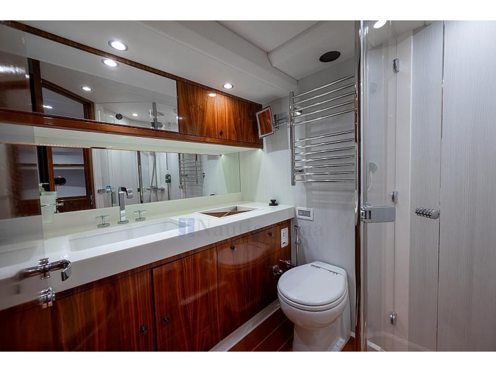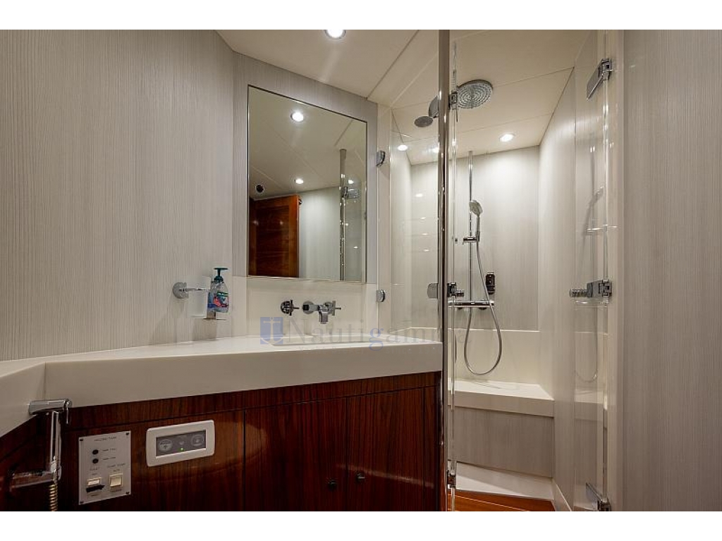 Pompa sentina elettrica, Dissalatore Cathelco Seafresh, Impianto acqua calda, Autoclave, Riscaldamento, Aria condizionata Airco, Impianto antincendio, Cantinetta vini in salone, Lavasciuga.