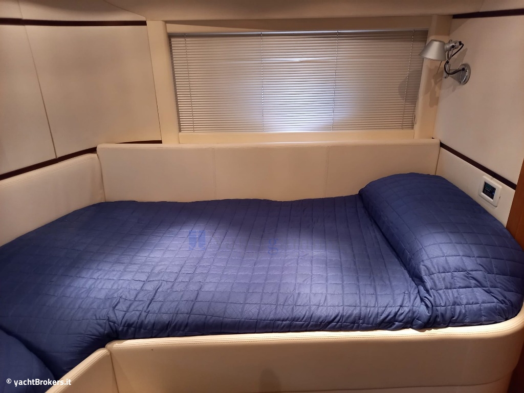 Cabina doppia letti a V a prua con bagno con wc e doccia; Cabina armatoriale matrimoniale accessibile dal salone con bagno con wc e box doccia; Cabina VIP matrimoniale a poppa accessibile dal pozzetto con bagno con wc e box doccia. Luminoso salone con tetto apribile e ampie vetrate. Cabina marinaio per 2 persone con bagno.