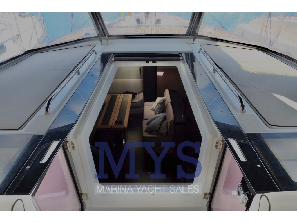 - Nonostante le dimensioni, è pensato per l?utilizzo in equipaggio ridotto grazie a winch elettrici, timonerie ergonomiche e bow/stern thruster.