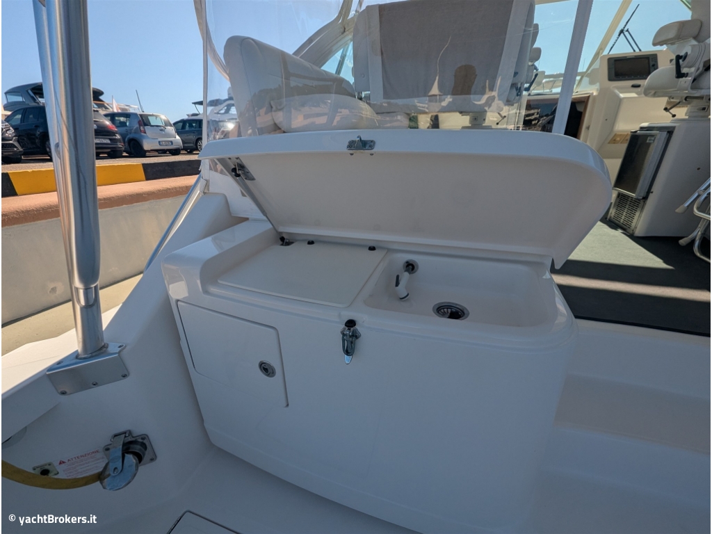 Il Cabo 38 Express è una popolare Sport Fishing boat, di medie dimensioni, nota per le sue eccellenti prestazioni, in particolare per la velocità e la manovrabilità oltre che per il pozzetto confortevole e ben progettato. È spesso considerato una buona opzione per i pescatori che desiderano passare da imbarcazioni più piccole o ridimensionare imbarcazioni più grandi. Il 38 Express è noto per la sua velocità , con la capacità di raggiungere i 37 nodi con motori CAT C12. Vanta inoltre una navigazione morbida e asciutta grazie alla precisa distribuzione del peso e al design di Michael Peters Yacht Design. Il Cabo 38 Express è costruito con uno scafo monoscocca robusto e una struttura del ponte che contribuiscono alla sua navigazione fluida e silenziosa e alla sua durata complessiva. L'angolo di deadrise di 17 gradi, combinato con la sua larghezza, rende l'imbarcazione più stabile a riposo e durante la pesca alla traina o all'ancora rispetto alle imbarcazioni con scafi a V più profondi. Si tratta di un'imbarcazione per pescatori esperti. Disponibile da fine agosto 2026.