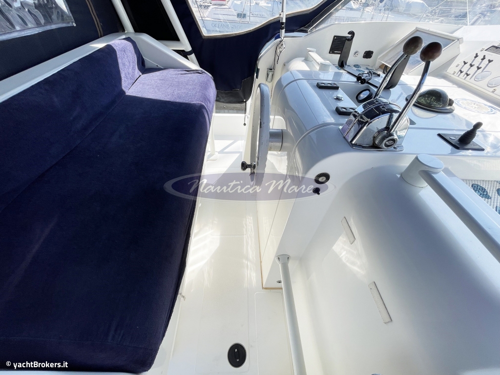 Il grandissimo prendisole a prua, con tavolo e tendalino parasole a scomparsa è certamente la zona più conviviale dell'imbarcazione. Anche la consolle di guida è ampia e generosa: sulla poltrona di comando trovano sistemazione 3 persone ed il parabrezza, alto ed avvolgente, insieme al roll-bar ed al tendalino garantiscono protezione durante la navigazione. Gli ospiti a bordo sono protetti da un alto e sicuro pulpito-tientibene perimetrale che si apre verso poppa per l'accesso alla plancetta bagno e verso prua per l'accesso al verricello. Ideale anche per utilizzo charter.