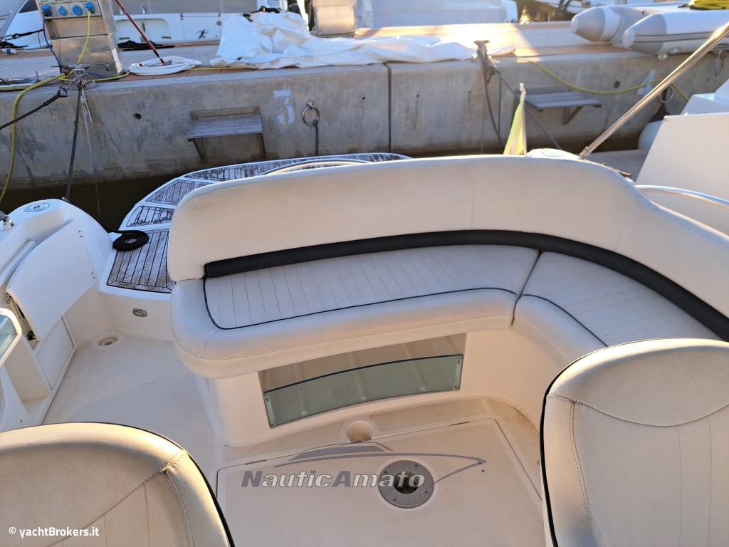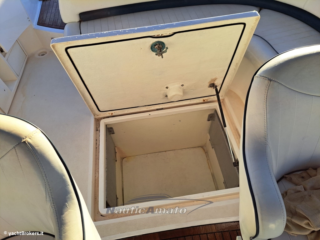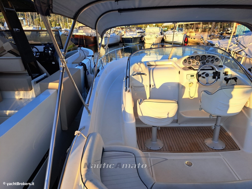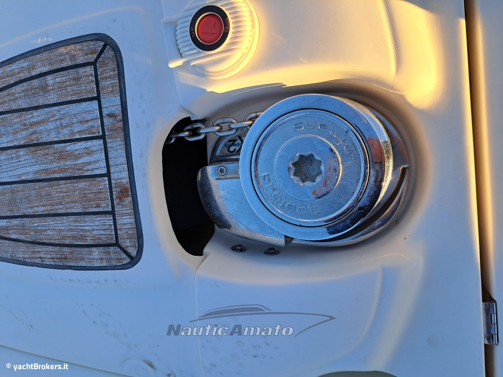 Walk around con 3 posti letto, cucina attrezzata e con wc marino che vanta degli esterni sfruttati in maniera molto intelligente, con il passaggio a prua comodo e confortevole per andare al prendisole di prua e pozzetto caratterizzato da divanetto ad "elle" e poltroncine guida girevoli a 360°