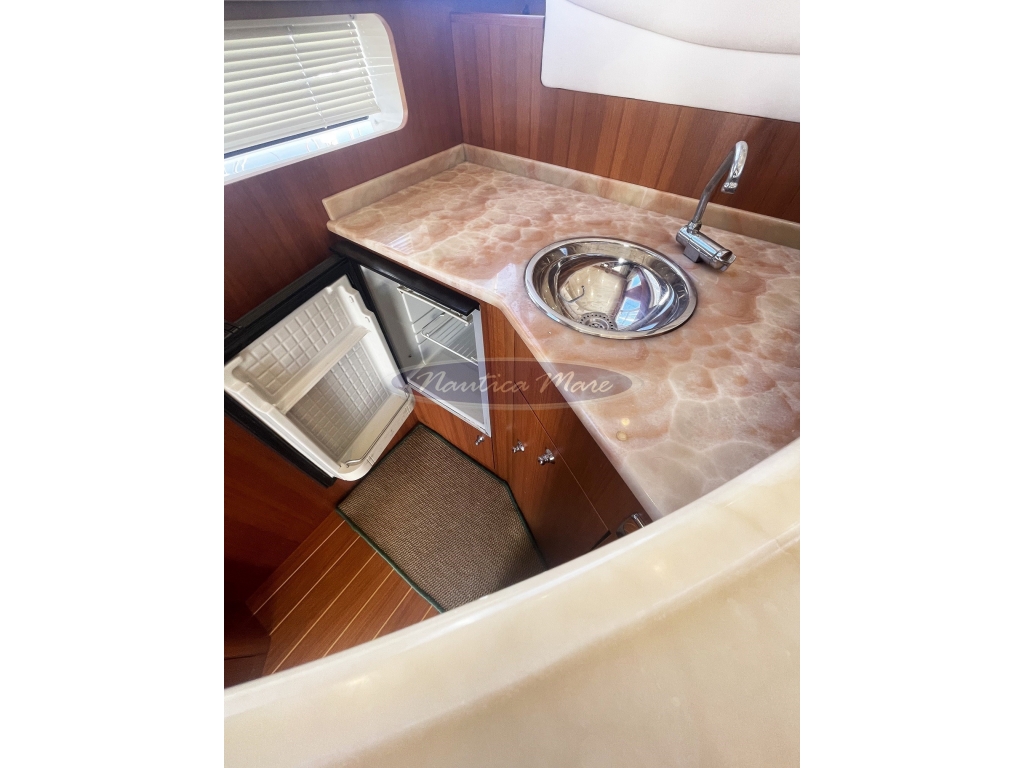 cucina completa, angolo bar in dinette interna, doppia timoneria e strumentazione elettronica di navigazione sul fly.