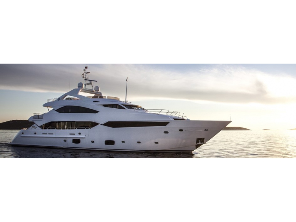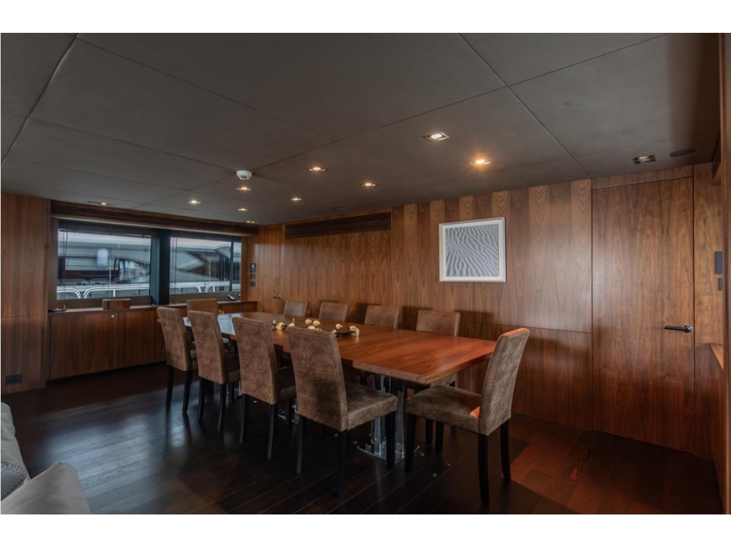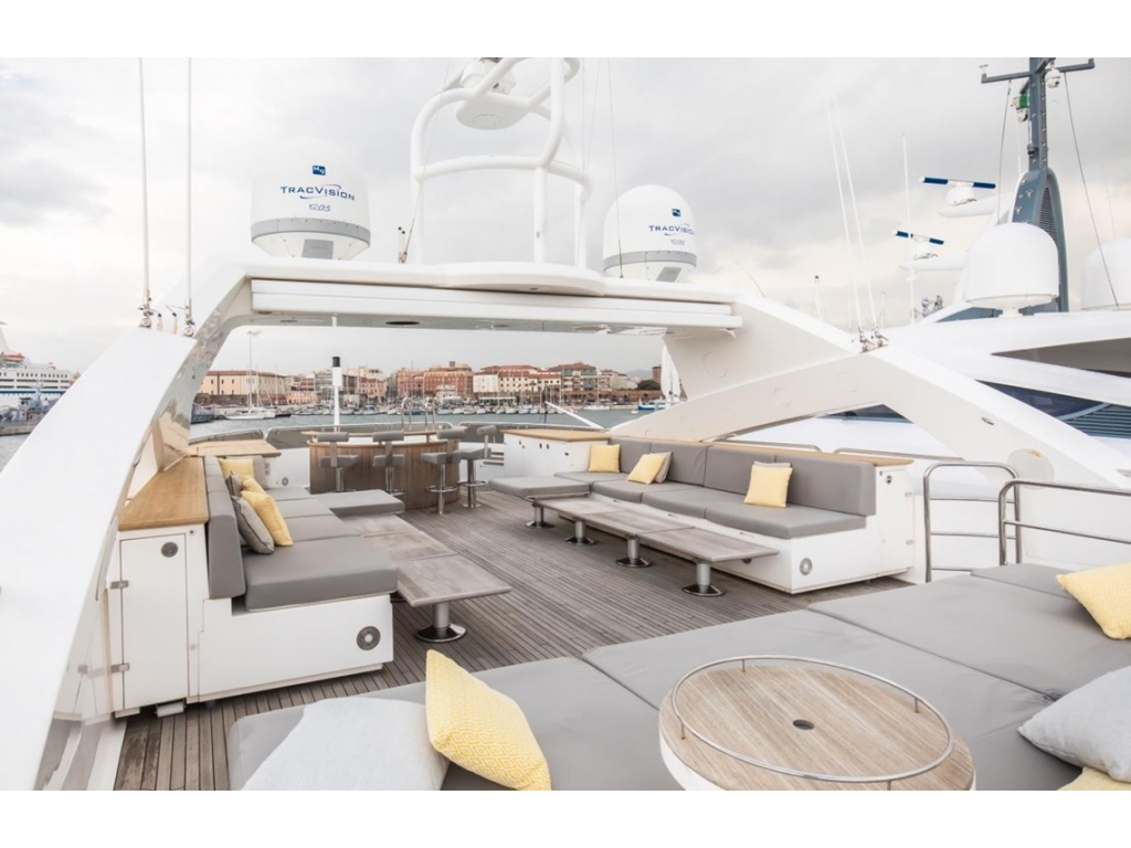 Equipaggiata con 2 motori MTU da 3.180 Hp e dotata di stabilizzatore, garantisce comfort sia in navigazione sia all'ancora.