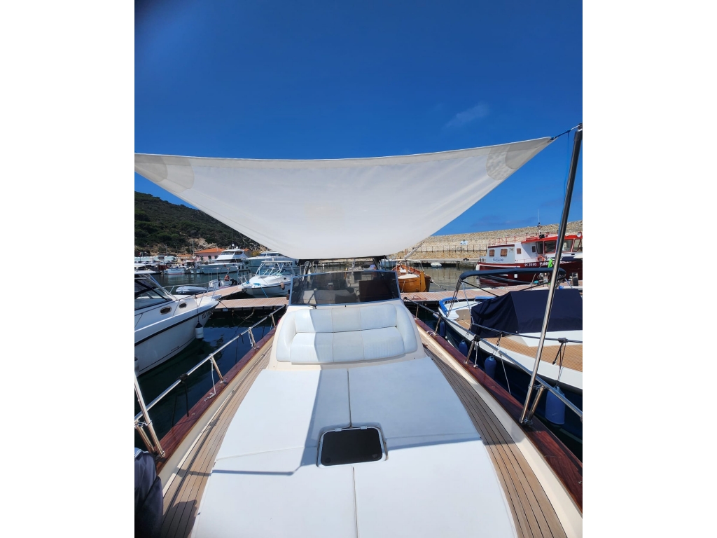 - cuscinerie esterne nuove, teli ombreggianti nuovi a prua e a poppa.