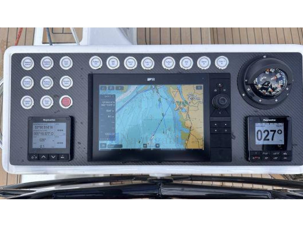 Elettronica Raymarine: Log/Speed i70s, Echo i70s, Strumento del vento i70s, Autopilota ACU-400, Indicatore angolo barra su autopilota, Gps RS150, Chartplotter Axiom Pro 12" a entrambe le timonerie, Radar Quantum-2 CHIRP, Vhf RAY90. Tel.sat. Iridium con antenna est, Display Raymarine i70s addizionale su timoneria di dritta, Router 5G. Tachimetro, Alternatore 110A 24V, Voltmetro, Luci navigazione a led, Luci su crocette inferiori.
