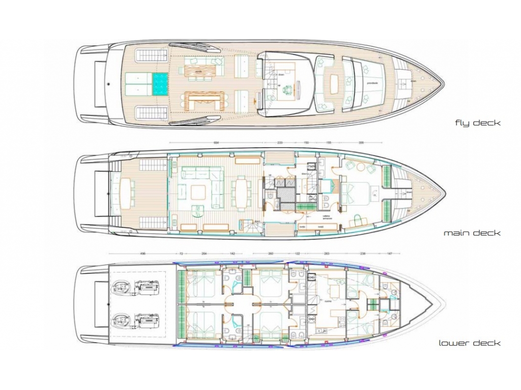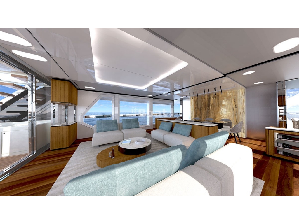 Sempre d'esclusiva impronta costum, privilegia generosi spazi interni ed esterni, offrendo 5 cabine per 10 ospiti, un ampio lumisono salone e grandi spazi esterni affacciati sul mare, dotati di ogni comfort ed accessorio. In particolare, sia a prua, sia a poppa si estente un infinity sundeck.