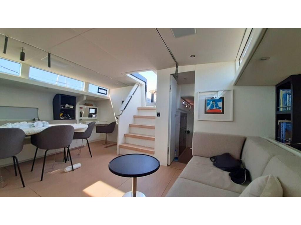 ? Cucina a poppa sinistra, tra salone e zona crew, aperta verso il salone.