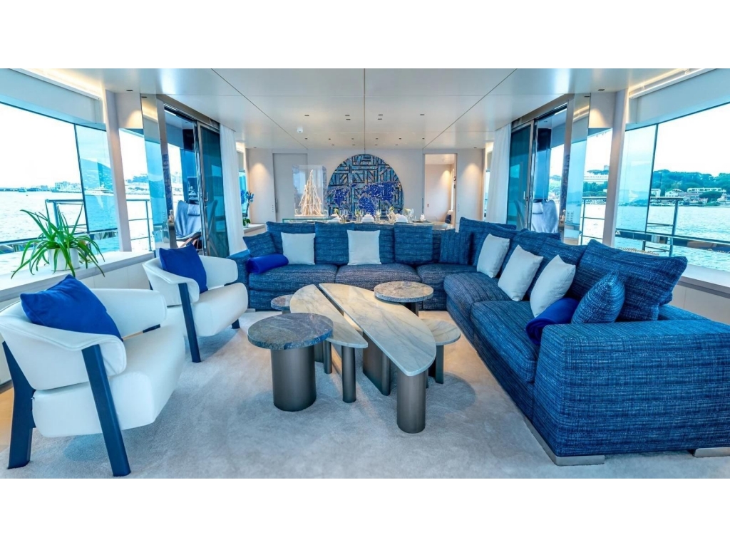 Motorizzata con 4 IPS Volvo Penta raggiunge una velocità massima di 28 nodi e una velocità di crociera di 23 nodi.