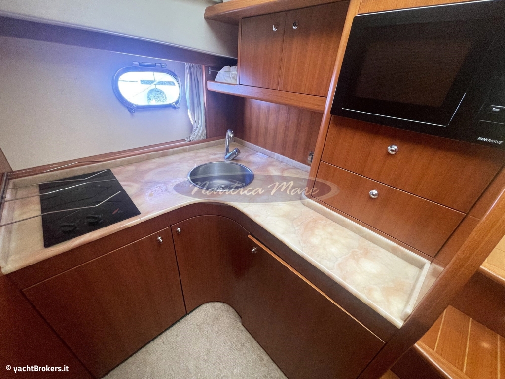 cucina completa, angolo bar in dinette interna, doppia timoneria e strumentazione elettronica di navigazione sul fly.