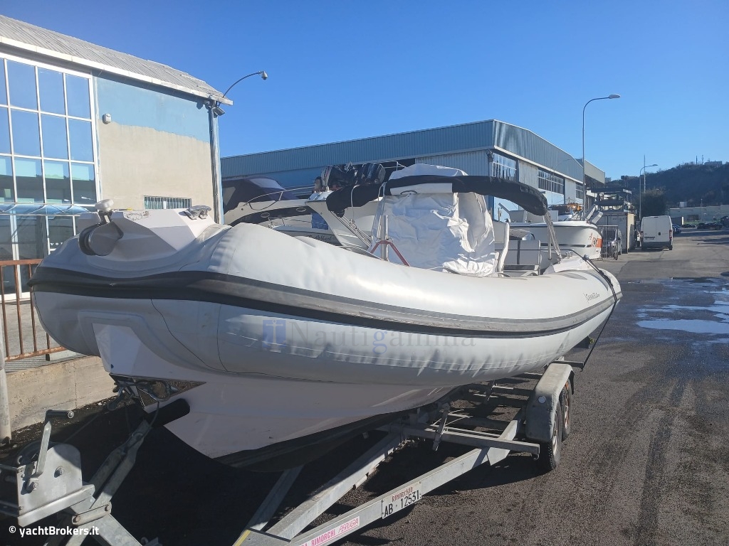 Bimini top, Tendalino, Cuscineria esterna completa, Prendisole a prua, Divanetto di poppa con schienale ribaltabile per trasformazione in prendisole, Pozzetto con due plancette in vtr di cui quella a sinistra con scaletta retrattile, Luci di navigazione.