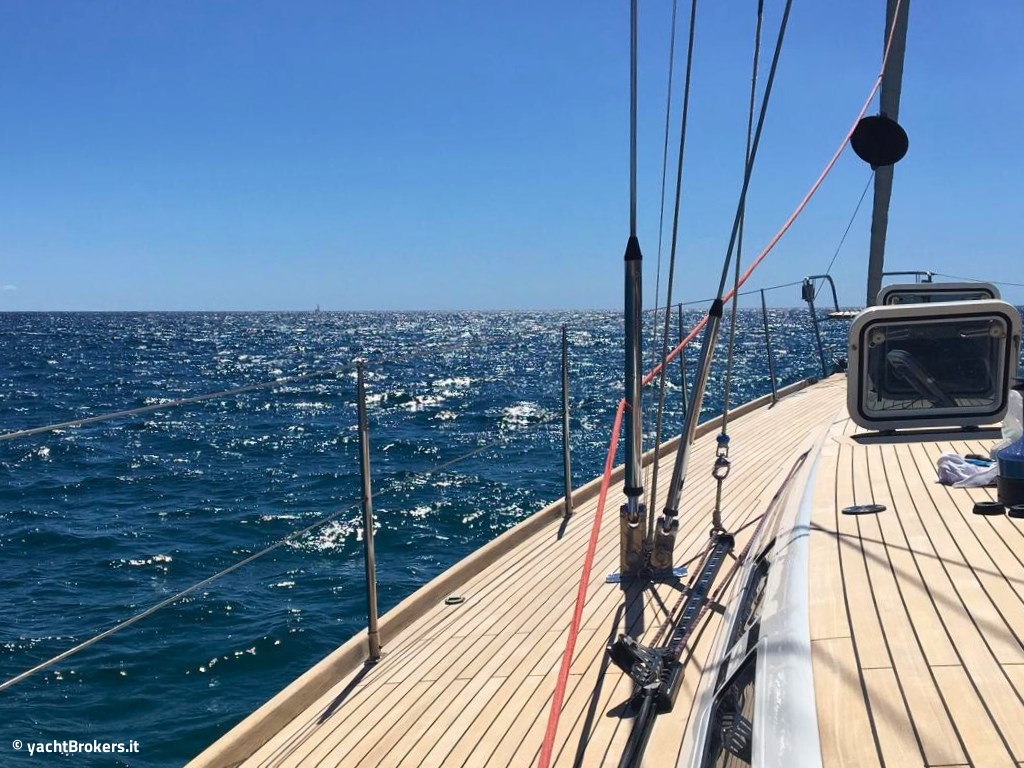 Dal 2018 ad oggi l?imbarcazione è stata oggetto di importanti lavori di aggiornamento, tra cui la sostituzione del motore Cummins, il rifacimento del teak di coperta, l?installazione di un impianto elettrico con batterie al litio Victron, aria condizionata a chiller inverter e dissalatore. L?albero e il boma in carbonio Offshore Spars, recentemente riverniciati, contribuiscono a mantenere elevate prestazioni a vela.
