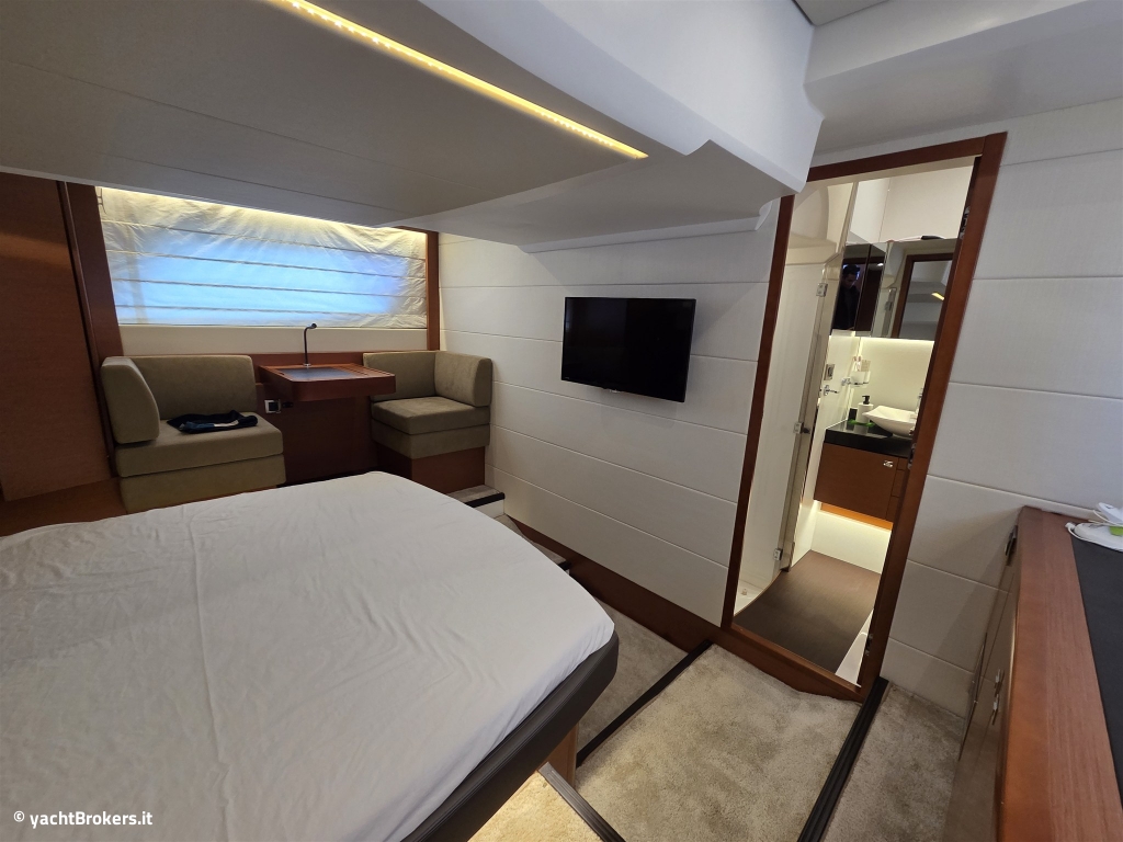 La cabina armatoriale situata a centro barca ha il suo accesso personale dal salotto.