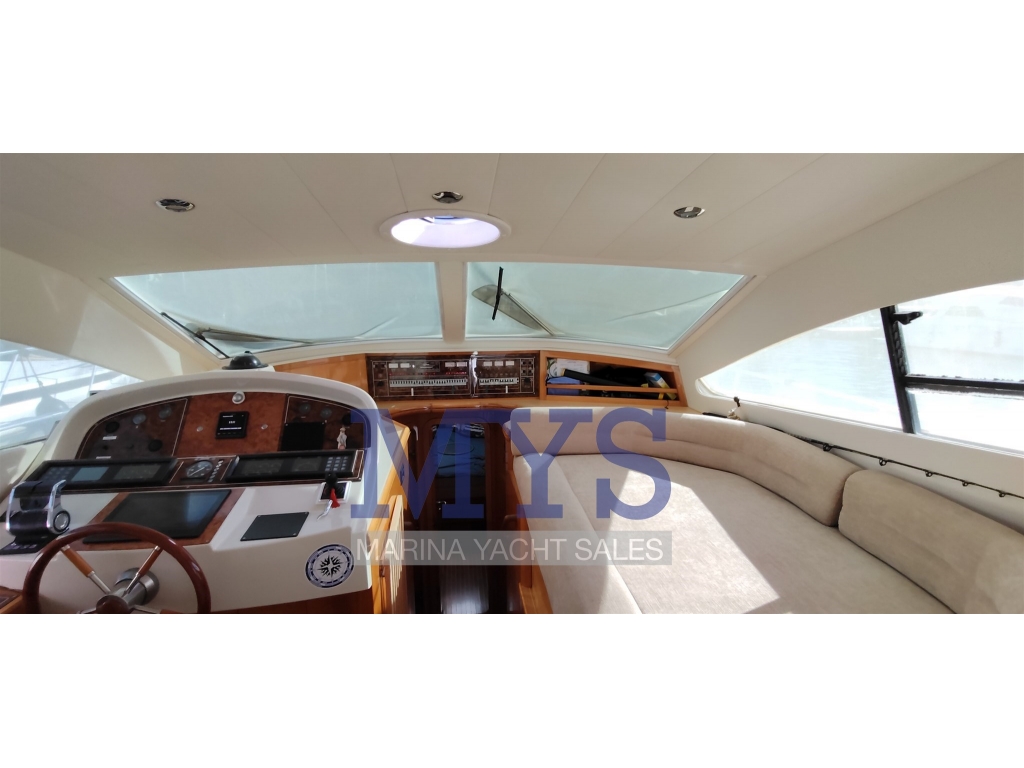 Doppia timoneria, GPS, Radar, Pilota automatico, VHF, ecoscandaglio, bow thruster proporzionale, flap elettrici, comandi motore elettronici, salpa ancore elettrico, contametri catena, strumentazione motori completa, pompe di sentina automatiche e manuali.