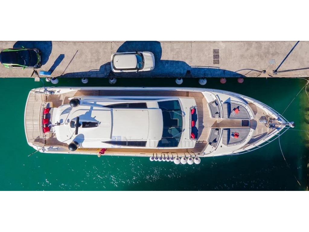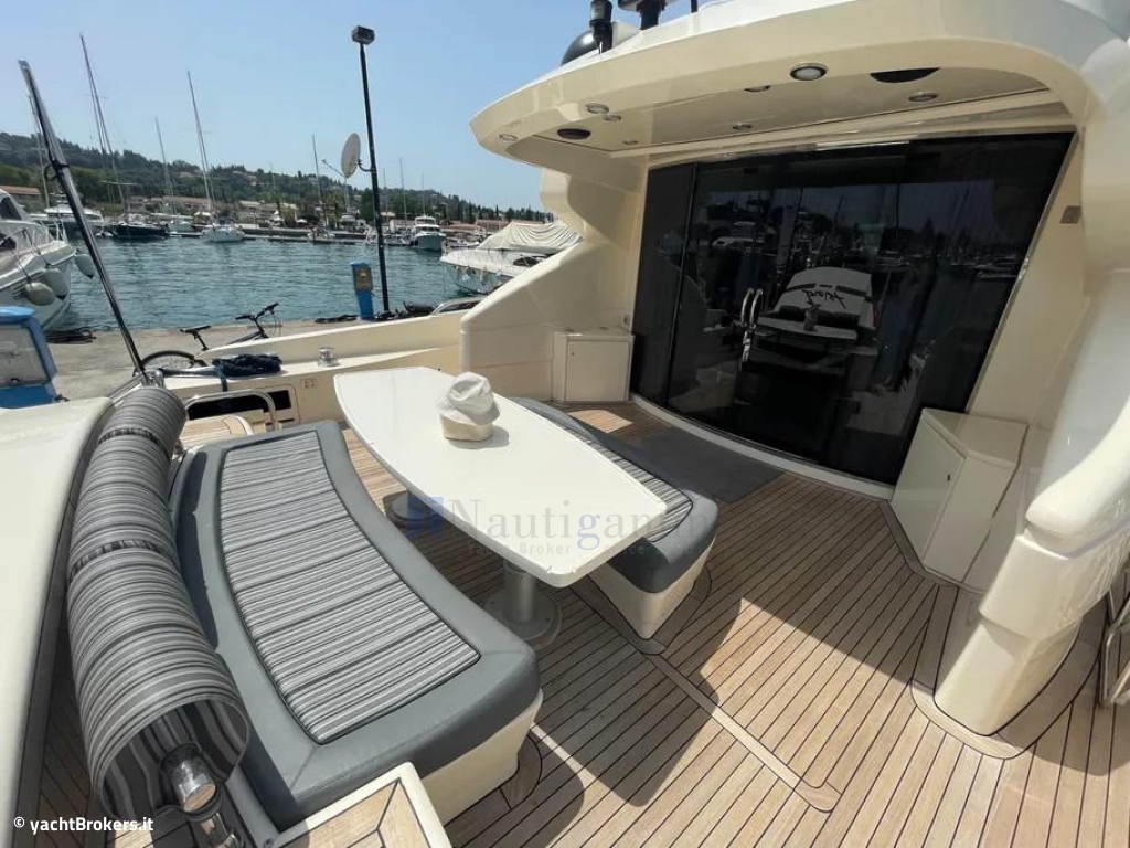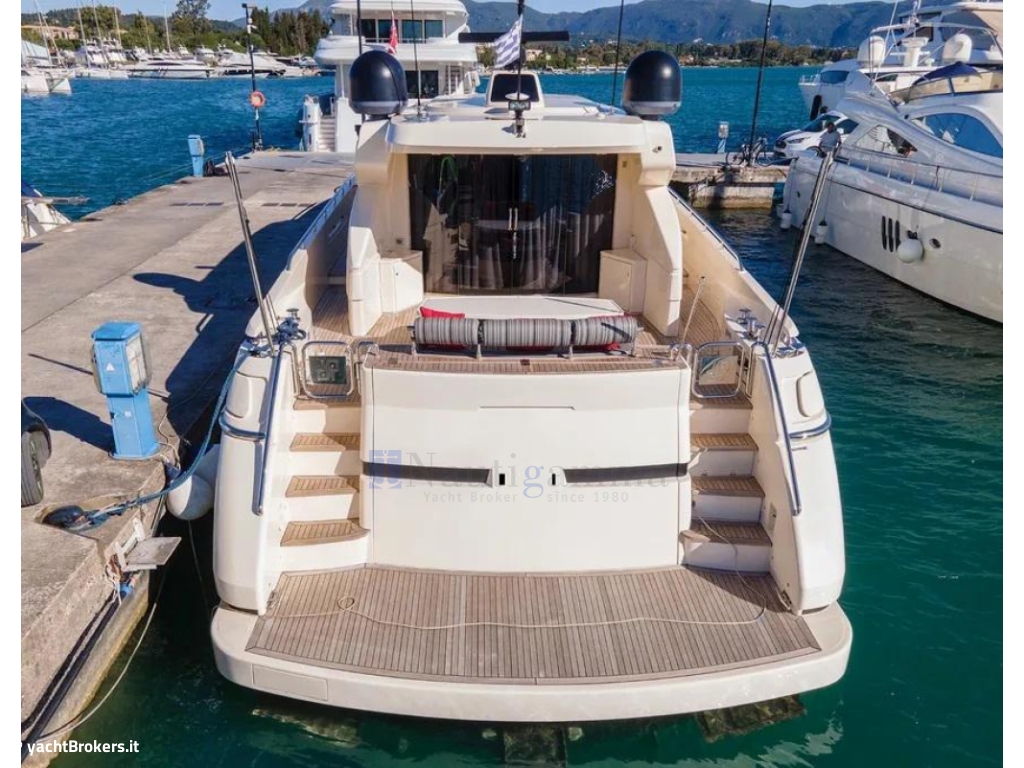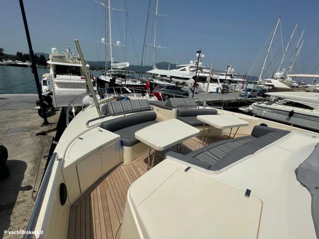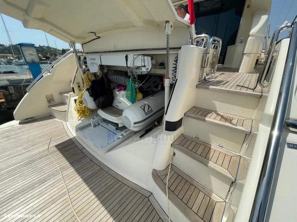 Hard top con tettuccio apribile sopra la timoneria, Area prendisole su ponte di prua con divanetti e tavolini, Pozzetto con sedute, tavolini e wet bar con frigo e lavandino, Doccia pozzetto, Sprayhood, Bimini top, Salpancora elettrico con contacatena, Bitte in acciaio, Piattaforma bagno idraulica in teak (nuovo 2018) con scaletta bagno pieghevole, Passerella idraulica Besenzoni telescopica, Garage per tender idraulico a tutto baglio, Tender Zodiac+fuoribordo Honda 125hp, Luci subacquee a led. Zattera.