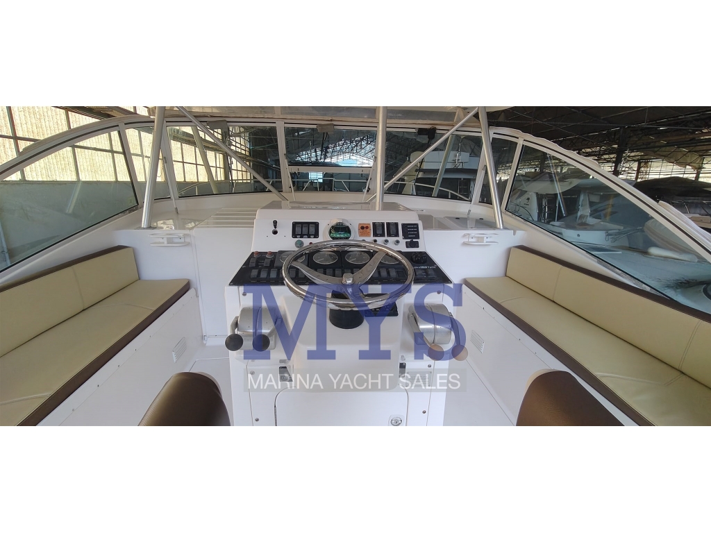 This particular boat is well equipped for serious sport fishing, featuring Tuna Tower, outriggers, rod holders, live bait tank and fighting chair, making it ideal for offshore big game fishing.