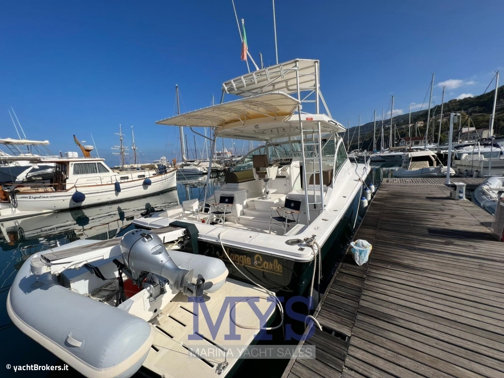Questo esemplare si distingue per la configurazione completa dedicata alla pesca, con Tuna Tower (al momento smontato, ma facilmente rimontabile), portacanne, vasca del vivo , oltre a un ampio pozzetto operativo ideale per battute di pesca impegnative.