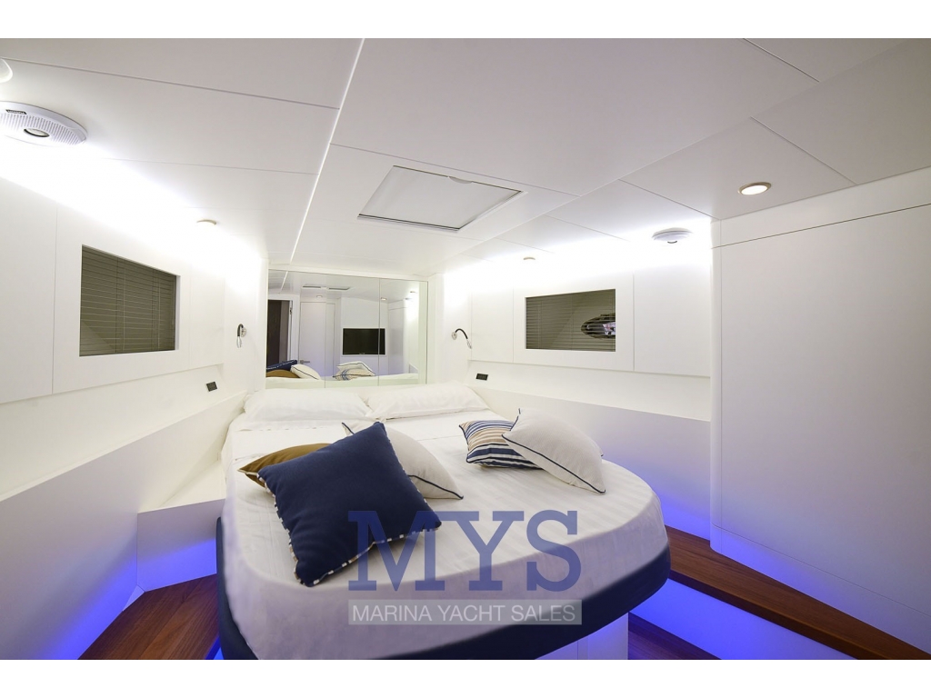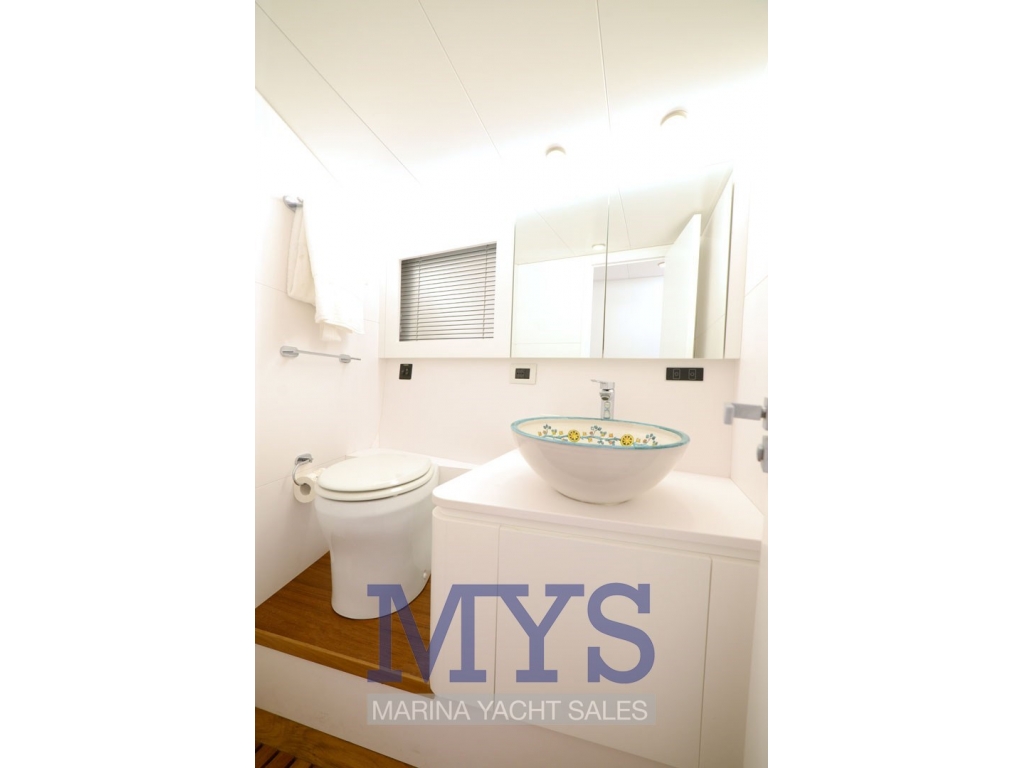 Cabina di prua con letto matrimoniale a pensila e bagno privato con doccia