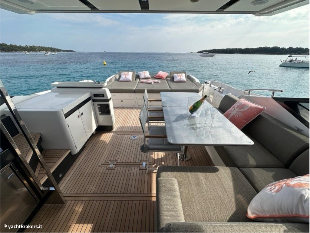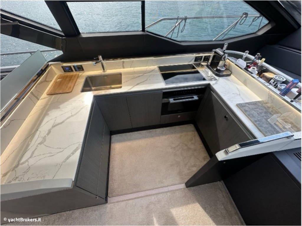 Seakeeper NG16 - 2 generatori (Kohler 19 kVA e Mase 6.5 kVA) - dissalatore HP 360 l/h - bow thruster - piattaforma bagno idraulica - Glendening cable master - luci subacquee (4) - elettronica completa Raymarine (4 x 16") - AIS - radar Raymarine - pilota automatico - VHF - ecoscandaglio - terza stazione di manovra con joystick in pozzetto - teak in pozzetto, passavanti e fly - passerella idraulica Opacmare - hard-top con tetto apribile - bimini idraulico a prua - bimini idraulico fly - tendalino elettrico pozzetto - 100 m catena ancora + ancora Ultra Marine 45 kg - winch pozzetto - Starlink - impianto Hi-Fi Bose - TV salone con sistema hi-low - TV in 3 cabine + cabina equipaggio - audio Fusion pozzetto - 4 cabine + cabina equipaggio - 3 bagni - aria condizionata reversibile - salone in pelle - pavimento in legno nel salone - cassaforte - lavatrice - asciugatrice - lavastoviglie - forno + microonde - 4 frigoriferi - 1 congelatore - cantinetta vini.