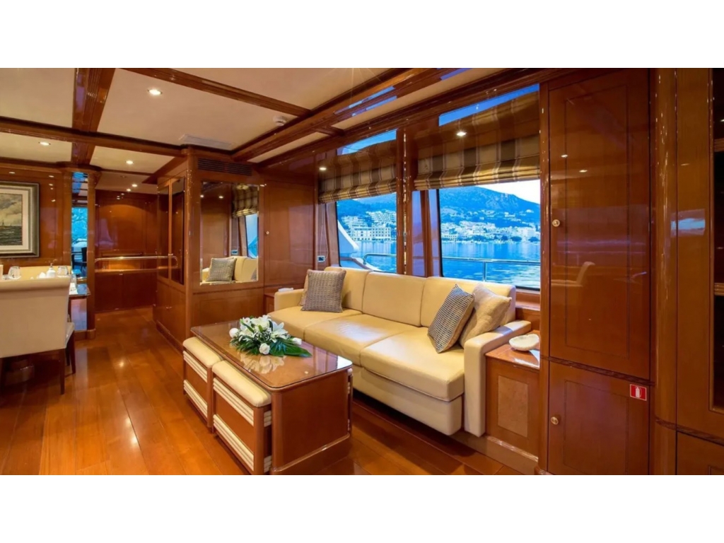 La suite armatoriale si trova sul ponte principale, una caratteristica rara per uno yacht di queste dimensioni, mentre il ponte inferiore offre una spaziosa VIP a tutto baglio e due doppie con letti songoli in piano.