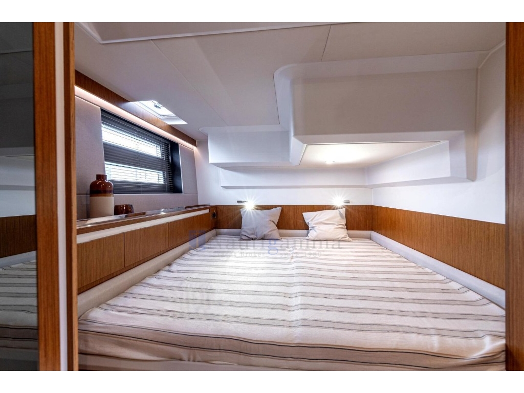 Cabina ospiti matrimoniale a sinistra con bagno e doccia separata; Cabina ospiti a dritta matrimoniale con bagno e doccia separata; Armatoriale a prua con letto a isola, bagno e doccia. Wc elettrici.