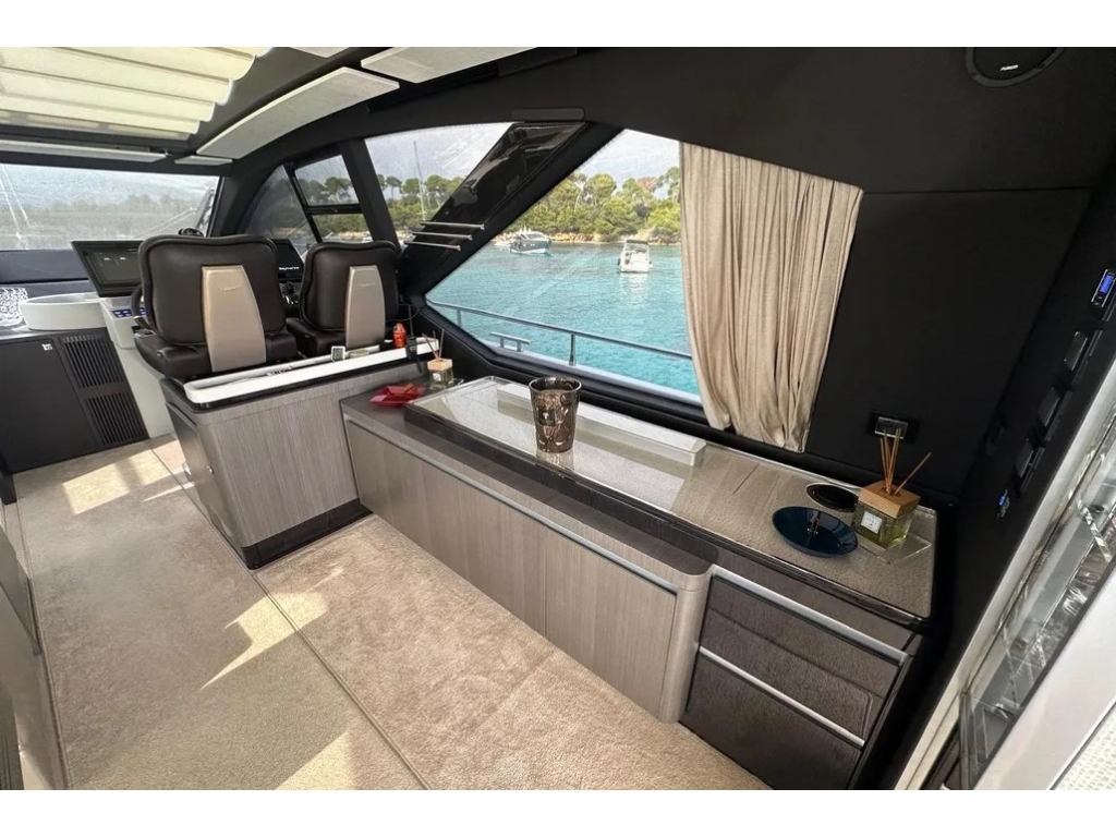 Seakeeper NG16 - 2 generatori (Kohler 19 kVA e Mase 6.5 kVA) - dissalatore HP 360 l/h - bow thruster - piattaforma bagno idraulica - Glendening cable master - luci subacquee (4) - elettronica completa Raymarine (4 x 16") - AIS - radar Raymarine - pilota automatico - VHF - ecoscandaglio - terza stazione di manovra con joystick in pozzetto - teak in pozzetto, passavanti e fly - passerella idraulica Opacmare - hard-top con tetto apribile - bimini idraulico a prua - bimini idraulico fly - tendalino elettrico pozzetto - 100 m catena ancora + ancora Ultra Marine 45 kg - winch pozzetto - Starlink - impianto Hi-Fi Bose - TV salone con sistema hi-low - TV in 3 cabine + cabina equipaggio - audio Fusion pozzetto - 4 cabine + cabina equipaggio - 3 bagni - aria condizionata reversibile - salone in pelle - pavimento in legno nel salone - cassaforte - lavatrice - asciugatrice - lavastoviglie - forno + microonde - 4 frigoriferi - 1 congelatore - cantinetta vini.