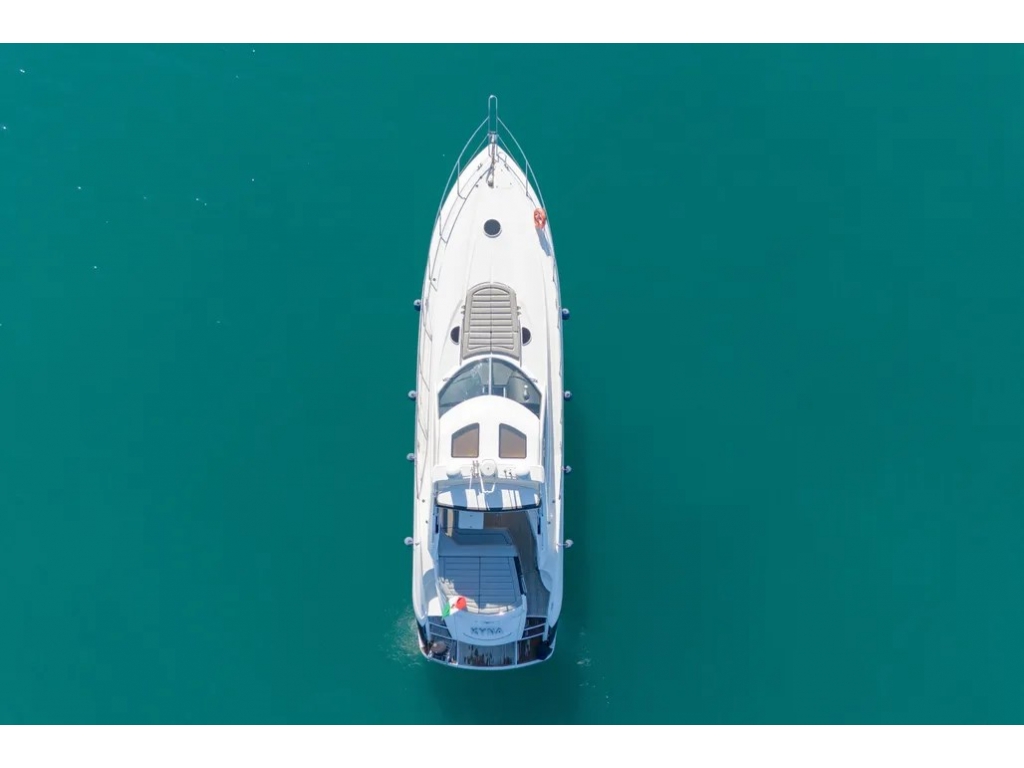 Numerosi accessori e migliorie : scafo appena verniciato in blu e porta del garage in bianco (giugno 2025), hard top apribile elettricamente,cuscineria esterna nuova, nuovo teak del carabottino della passerella, luci sub, aria condizionata.