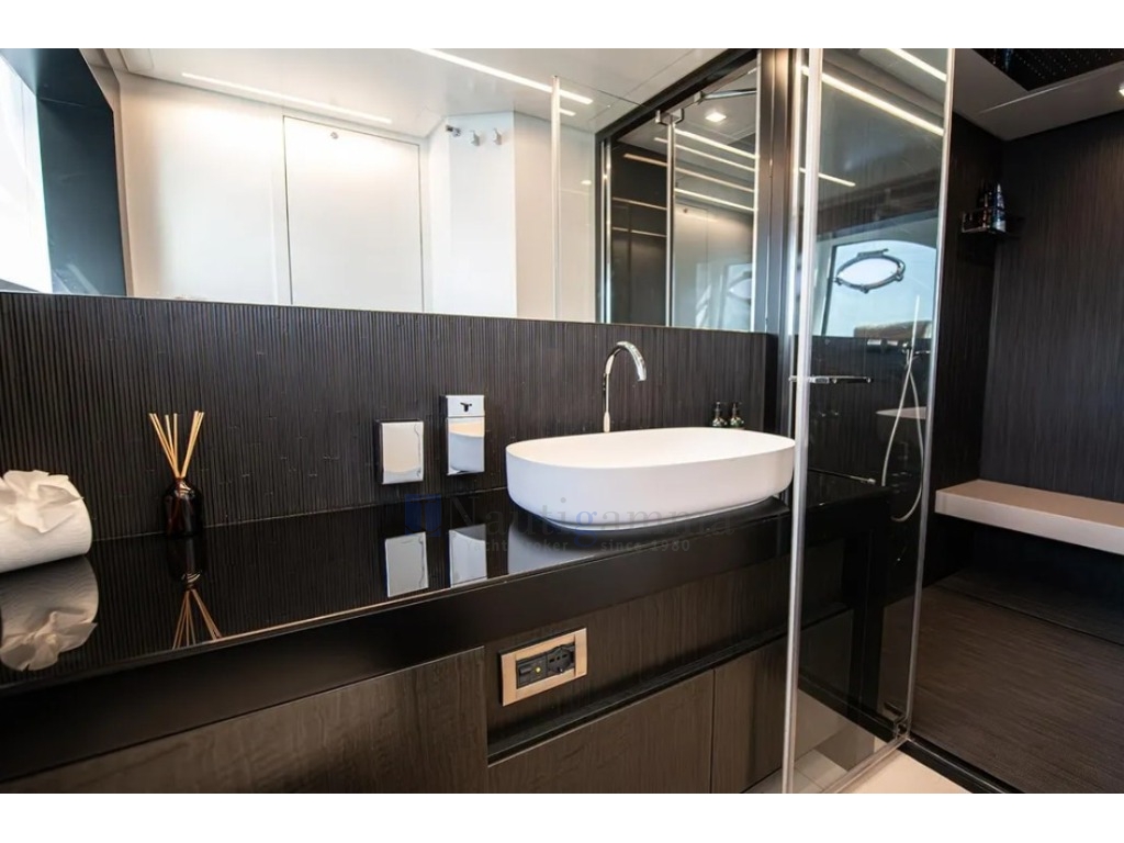 Antenna Sat KVH TV8, Tv 49" in salone con meccanismo up&down, Tv 55" in cabina armatoriale, Altoparlanti esterni, Lavastoviglie, Lavatrice.