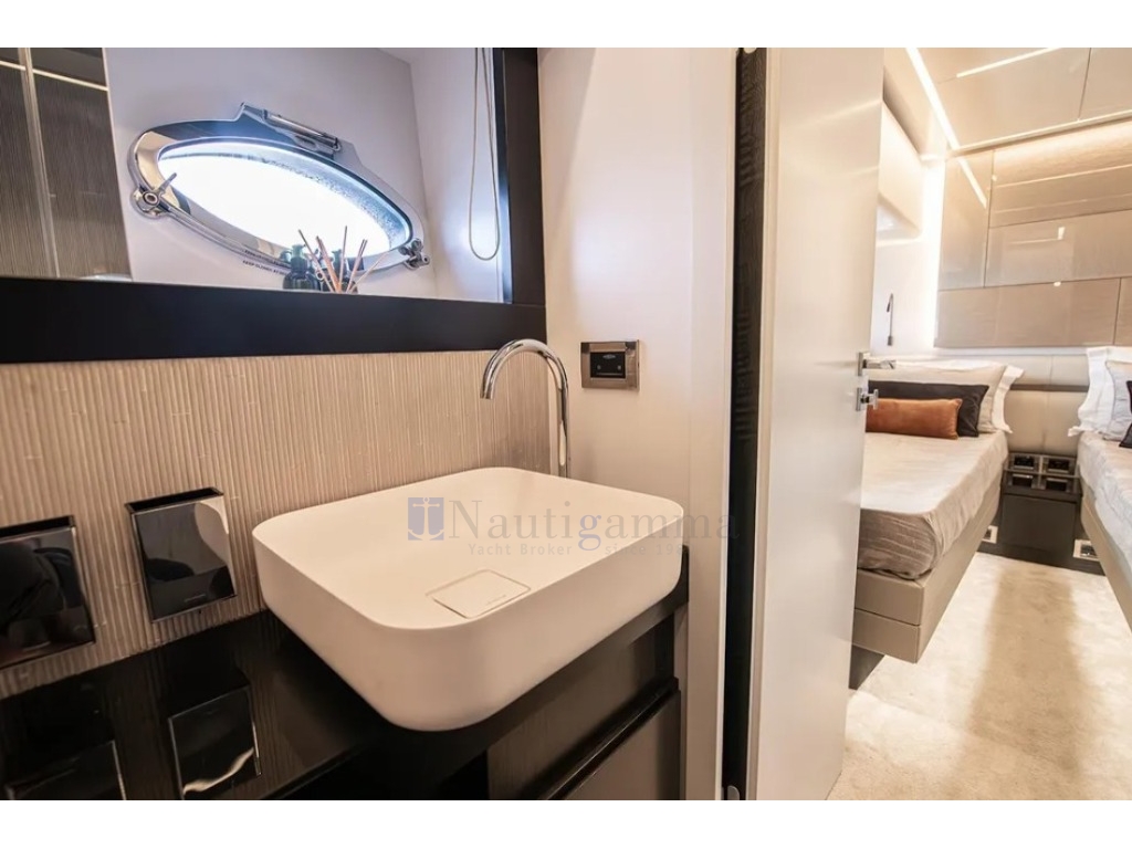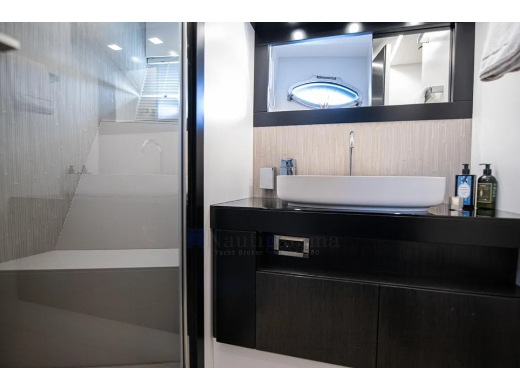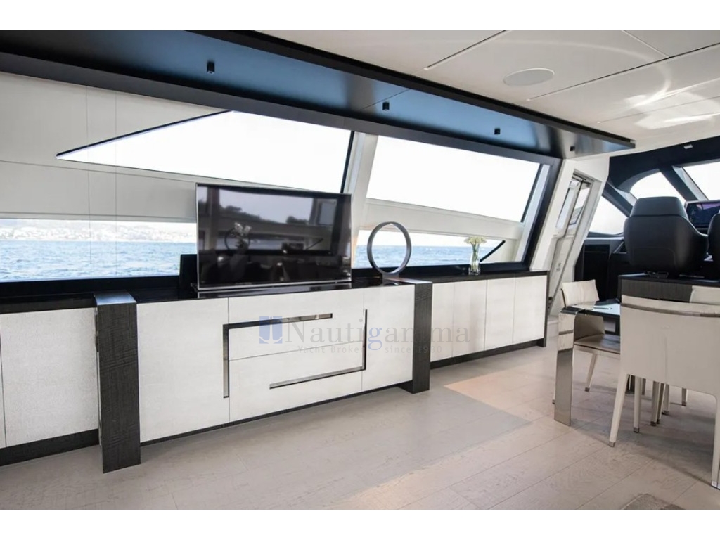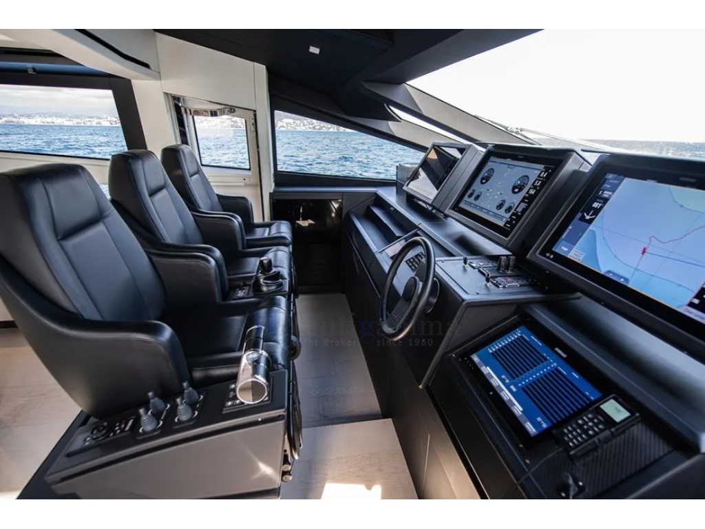 Elettronica completa Simrad (monitor 24"); Sistema di posizionamento dinamico, Seconda postazione di comando sul sundeck, Videocamere in pozzetto, sia a dritta che a sinistra. Ricevitore AIS NAIS400. Sistema gestione digitale Naviop.