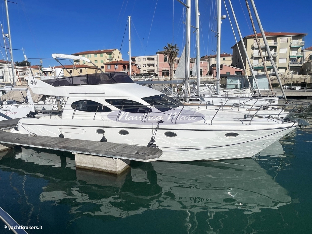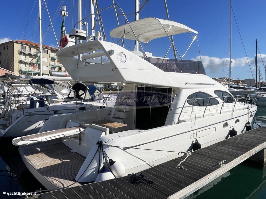 Bellissima imbarcazione del noto costruttore italiano, il Carnevali 145 è un flying-bridge dalle linee classiche ed allo stesso tempo intramontabili. Gli spazi e gli ambienti sono generosi, molto luminosi ed accoglienti, sia esternamente che internamente. Percorrendo l'imbarcazione da poppa verso prua possiamo apprezzare l'ampia piattaforma bagno dove trovano alloggio il tender con motore e la passerella idraulica per l'imbarco e lo sbarco a terra; tramite due aperture protette da cancellini inox dalla piattaforma bagno si arriva, senza intralci, nel pozzetto: ampio, accogliente, con un grande divano ed un pratico e robusto tavolo in teak. Una comoda ed agevole scala conduce sul fly: il ponte più alto dell'imbarcazione, uno spazio generoso ed attrezzato per le lunghe e panoramiche navigazioni e per la prolungata permanenza con doppio tendalino parasole, ampio divano prendisole, mobile con grill, frigofiero e lavello oltre ad un comodo divano ad U con tavolo ovale abbattibile. Tornando sul ponte inferiore, il walkaround conduce rapidamente ed in totale sicurezza all'area prodiera attrezzata, anche in questo caso, con generoso prendisole, verricello con winch di tonneggio, à ncora e catena. Gli interni sono molto accoglienti e ben rifiniti. I mobili ed il pavimento in legno si abbinano perfettamente al rivestimento in alcantara delle pareti e del soffitto delle cabine. Dal salone, scendendo quattro gradini si raggiunge la zona notte con tre comode cabine doppie: una con letto matrimoniale (e bagno ensuite) e due con comodi letti singoli in piano. I due bagni di bordo sono spaziosi, ciascuno con box doccia, wc, lavandino e bidet. Ulteriore e certamente grande punto di forza di questo esemplare in vendita è la doppia motorizzazione da 625 hp Volvo Penta in linea d'asse diretta che garantisce all'imbarcazione una velocità ed un comfort di navigazione unici. Imbarcazione disponibile per visite su appuntamento. Provvigione di intermediazione esclusa.
