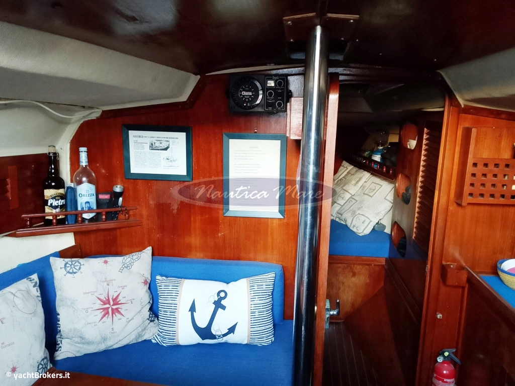 Armo Sloop ; Randa Semi nuova ; Vele di prua: Genoa semi nuovo con rollafiocco Bamar ; 6 Winch + copri winch di colore azzurro ; Lazy Jack ; Lazy bag ; Gennaker con calza